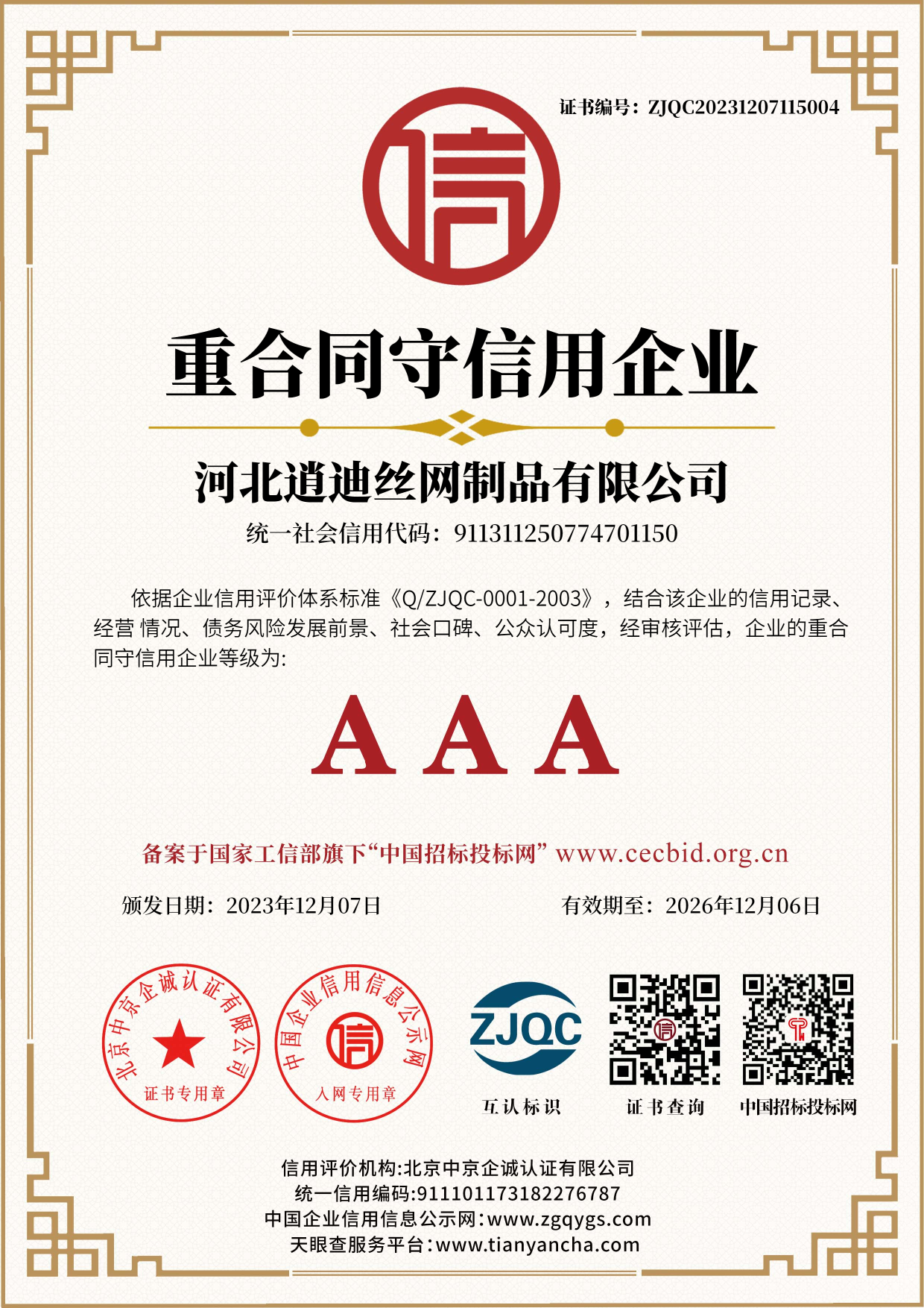 河北逍迪絲網制品有限公司誠信天下,誠信是我們公司一個原則問題不可撼動的,以心中有誠信的思想結交五湖四海的朋友,能達到雙贏是最好的,我們堅信朋友多了路好走,我們公司都是老朋友多,我們一直是這樣做的。河北逍迪絲網制品有限公司成立于2013年注冊資本壹仟伍佰萬整,主要生產沖孔網,鋼格板,金屬防蟲網,如實的實體廠家,是一家-研發-銷售-生產-安裝-售后一條龍公司,2019年通過了ISO 9001認證管理體系符合GB/T 19001-2016/ISO 9001:2015標準,同時通過了SGS認證,擁有商標版權2品牌,擁有一個著作版權,河北逍迪絲網制品有限公司位于中國有名的(絲網之鄉)安平縣,于天津,北京,雄安,石家莊相鄰,交通非常發達,出口可以選擇天津港口非常近每天都有接貨送貨往返車輛,空運可以選擇石家莊正定機場,附近也有鐵路運輸,當地還有兩個生態物流園區發往全國各地,我們沖孔網工廠生產設備有:普通沖壓機,高速沖壓機,自主研發小微孔沖壓機,龍門沖,磚塔沖孔,重型沖孔機,萬瓦級別激光切割機,3000W激光切割機,焊接設備,折彎機,校平機,剪板機,精密校平機,(對板面平整度要求苛刻的客戶群體0.5-0.2誤差)我們公司銷售市場沒有局限性國內國外都供應,擁有出口權...